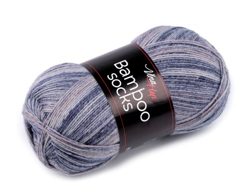 Pletací ponožková příze Bamboo Socks je velice kvalitní. Díky vysokému podílu vlny ponožky zahřejí, bambusová viskóza zajistí odolnost vůči prošlapání a má antialergenní vlastnosti. Je samovzorovací, jedno klubíčko vyjde na jeden pár ponožek pro dospělé nebo 2 páry ponožek pro děti. Je vhodná nejen na ponožky, ale i svetry, sukně, ponča, čepice, rukavice a nákrčníky. Velikost jehlic: 2,5 - 3 Velikost háčku: 2,5 - 3