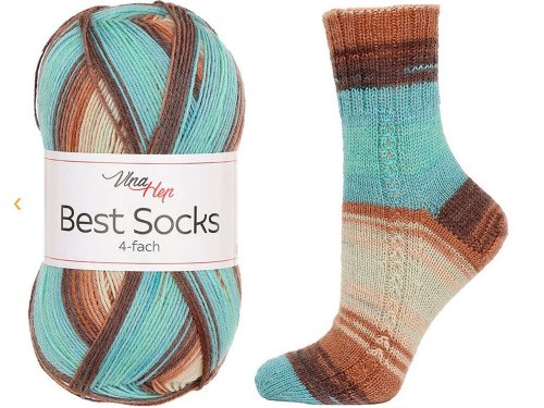 Pletací příze Best Socks se pyšní kvalitou a vysokým podílem hřejivé vlny. Je samovzorovací a perfektně se tak hodí na pletení ponožek. Jedno klubíčko vyjde na jeden pár. Velikost jehlic: 2,5 - 3 Velikost háčku: 2,5 - 3