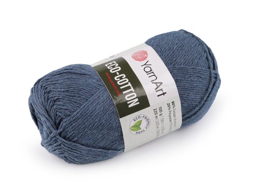 Bavlněná pletací příze Eco-cotton připomíná provázek. Je vhodná na pletení či háčkování halenek, vestiček, dekorací, sedáků, polštářů, tašek apod. Zpracování vláken této příze dodává úpletům přirozený přírodní vzhled, stejně působí i na dotek. Velikost jehlic: 3,5 Velikost háčku: 4
