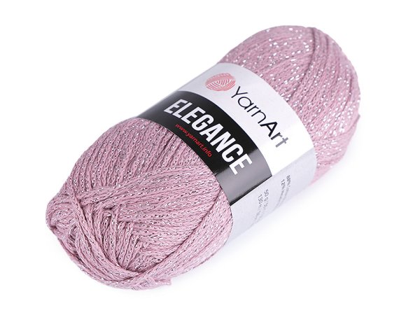 Pletací příze Elegance připomíná provázek. Je protkaná třpytivým lurexem. Můžete z ní uplést či uháčkovat svetříky, šály, čepice apod. Velikost jehlic: 4 Velikost háčku: 4