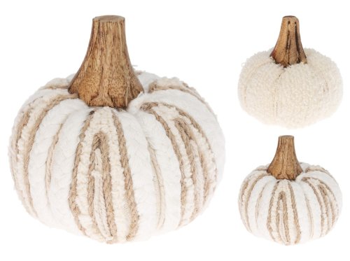 Ruční vzhled, hebká bavlna, tlumené tóny bílé a hnědé – tyto pletené dýně jsou stylovou alternativou ke klasické keramice. Skvěle vypadají v duetu i ve skupině s přírodními materiály. Zboží je dodáváno v mixu. Doručované zboží je vybíráno náhodně a nelze vybrat konkrétní provedení.