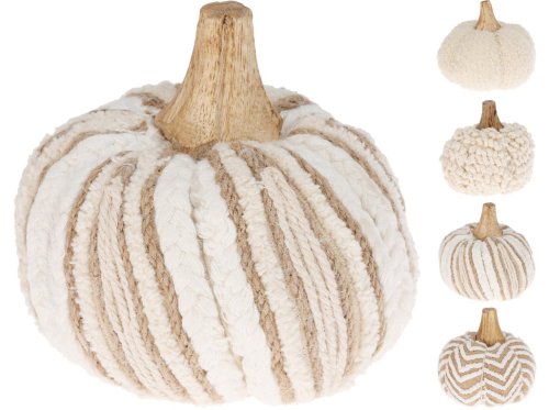 Ruční vzhled, hebká bavlna, tlumené tóny bílé a hnědé – tyto pletené dýně jsou stylovou alternativou ke klasické keramice. Skvěle vypadají v duetu i ve skupině s přírodními materiály. Zboží je dodáváno v mixu. Doručované zboží je vybíráno náhodně a nelze vybrat konkrétní provedení.