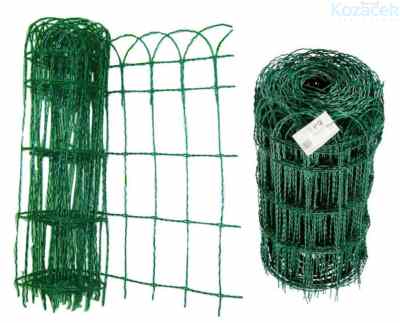 Výška 25 cm a délka 25 m, drát průměr 2 mm. Drátené okrasné zahradní pletivo s poplastovaným povrchem zelené barvy. EAN 8590804050384