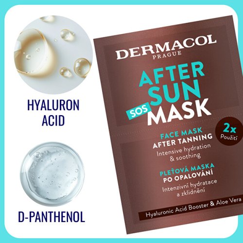 Pleťová maska po opalování poskytuje zklidnění podrážděné pleti po slunění. Maska má osvěžující a chladivý efekt na horkou pleť vystavenou dlouhému pobytu na slunci, posiluje ochrannou bariéru, pomáhá zabránit poškození pleti UV zářením, hydratuje a ulevuje od zarudnutí a zároveň předchází ztrátě elasticity pleti a vzniku vrásek.