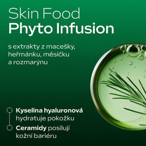 Dodejte své pleti novou energii s vysoce účinným Skin Food Super Sérum – silným koncentrátem, který spojuje hydratační sílu kyseliny hyaluronové, regenerační účinky ceramidů a unikátní Skin Food Phyto Infusion. Tato infuze z 100% přírodních extraktů z měsíčku lékařského, heřmánku, rozmarýnu a violky byla vyvinuta pro okamžitou hydrataci, viditelnou vitalitu a pružnost pokožky. Zažijte intenzivní pocit posílené, zářivé a zdravě vypadající pleti. Sérum je ideální pro každodenní použití – kdykoli potřebujete dodat pleti svěžest, rovnováhu a přirozený jas. Vůně je tvořena výhradně 100% přírodními esenciálními oleji a rostlinnými extrakty, které podtrhují harmonický charakter péče. Výsledky testování produktu Skin Food Super Serum