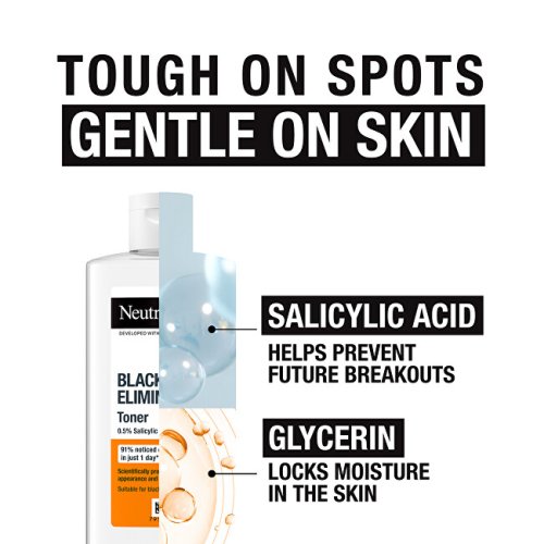 Čisticí pleťové tonikum s 0,5% kyselinou salicylovou pomáhá bojovat proti černým tečkám a předcházet jejich vzniku již od prvního dne*- vědecky potvrzeno. Pro jemnější vzhled pleti. Šetrný k pokožce - pro každodenní použití. *Vědecká studie na 48 testujících. Lahvička obsahuje 50% PCR (kromě uzávěru a etikety)Plně recyklovatelný obal (tam, kde existují recyklační zařízení)