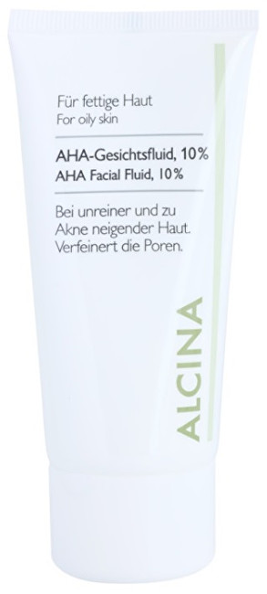 Pleťový fluid s 10% roztokem AHA kyselin je určený pro mastnou pleť. Redukuje póry, podporuje obnovu pleti a vylepšuje její elasticitu. Také účinně obnovuje problematickou pleť náchylnou k tvorbě akné. Nabízí intenzivní kosmetický peeling. Aktivní látky: