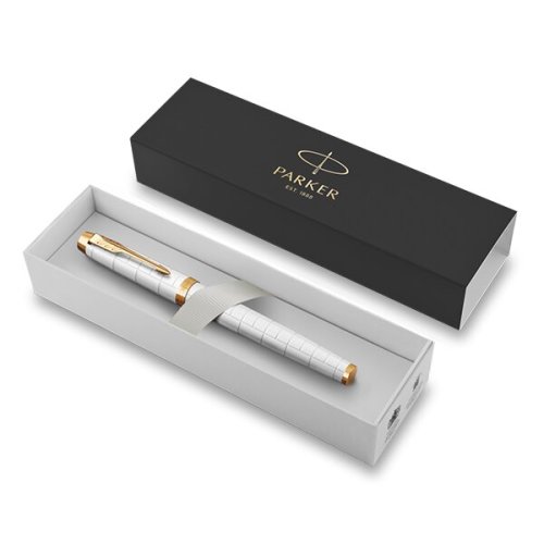 Plnicí pero:, * nasazovací víčko, * dvoukanálkový systém zásobování hrotu inkoustem, * přizpůsobeno výhradně k používání inkoustových bombiček Quink nebo konvertoru (není součástí balení), Dodáváno s modrou bombičkou, v elegantním dárkovém balení., TIP: K plnicímu peru byste mohli využít konvertory Parker s lahvičkovým inkoustem nebo inkoustové bombičky Quink., TIP: Jak vyčistit plnicí pero?, Parker IM je ideální partner s neomezenými možnostmi. Je elegantní i vysoce profesionální a spolehlivý. Nabízí odolný hrot z ušlechtilé nerezové oceli, širokou paletu provedení, inspirovaných tradicí značky Parker, uživatelské pohodlí i maximální výkonnost., JAK SE LIŠÍ HROTY F A M?, F - Slabý hrot (Fine) - Vhodný pro běžné psaní a poznámky. Mírný tlak vytváří jemnou linku. Velmi oblíbený, vhodný pro uživatele se standardním rukopisem., M - Střední hrot (Medium) - Průměrný tlak a šíře linky. Vhodný pro uživatele, kteří mají rádi maličko silnější linku.,