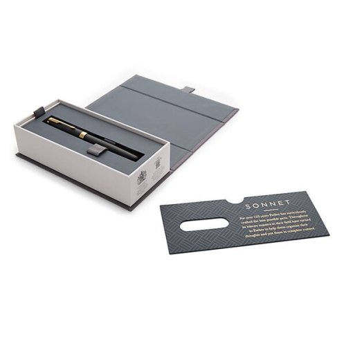 • nasazovací víčko, * standardní konvertor s pístem pro plnění pera inkoustem Quink z lahvičky, * možnost používat i inkoustové bombičky Quink, TIP: K plnicímu peru byste mohli využít konvertory Parker s lahvičkovým inkoustem nebo inkoustové bombičky Quink., Nadčasová elegance modelu Sonnet, jeho vytříbený styl i rozmanité povrchové úpravy skvěle navazují na designérskou tradici značky Parker. Sonnet je dokonalým zosobněním všeho, co, Parker umí nejlépe – mistrovského zpracování hrotů z 18karátového zlata, ideálního rozložení hmotnosti pera i pečlivého sestavení jednotlivých, celkem 17 různých dílů. Modelová, řada Sonnet je skutečně nadčasová a zároveň vždy aktuální.,  , TIP: JAK VYČISTIT PLNICÍ PERO?, JAK SE LIŠÍ HROTY F A M?, F - Slabý hrot (Fine) - Vhodný pro běžné psaní a poznámky. Mírný tlak vytváří jemnou linku. Velmi oblíbený, vhodný pro uživatele se standardním rukopisem., M - Střední hrot (Medium) - Průměrný tlak a šíře linky. Vhodný pro uživatele, kteří mají rádi maličko silnější linku.