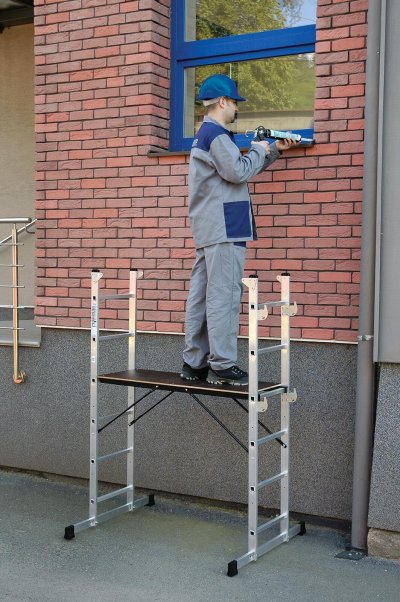 Pracovní plošinka HPP s úpravou na schody Eurostyl, se využívá do náročných podmínek, na stavbu nebo vnitřní úpravy. Lze využít i jako žebřík.