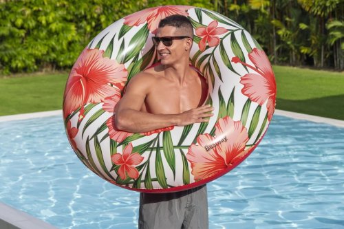 Plovací kolo Tropical o průměru 119 cm je nafukovací kruh určený pro děti od 12 let a dospělé, který nabízí pohodlné a bezpečné plavání či relaxaci ve vodě.