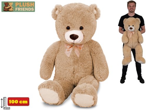 Plush Friends medvěd plyšový 100 cm světle hnědý s mašlí