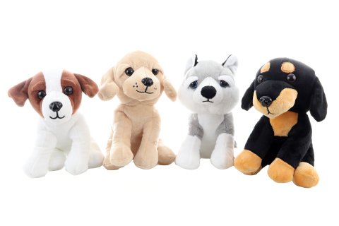 Plyšový pes sedící o rozměrech cca 18x12x13 cm. 4 druhy - dodáváme dle skladové dostupnosti. Věk 0+