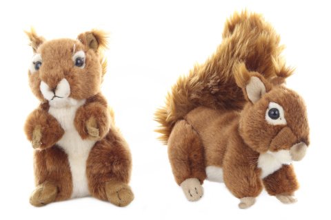 Plyšová veverka o velikosti cca 16 x 9 x 15 cm. Věk 0+
