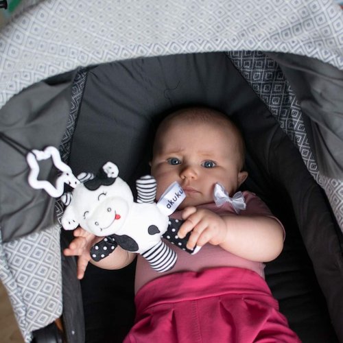 Krásná barevná hračka pro miminka ve tvaru zvířátka. Zvířátko chrastí a je vyrobené v pestrých barvách. Tvary a barvy hračky lákají pozornost dítěte, učí ho, baví a rozvíjí tak dětskou fantazii. Díky veselým barevným provedením bude Vaše dítě objevovat svět barev, tvarů a zvuků. Hračka je vyrobená z kvalitního a příjemného materiálu. Výška cca 22 cm. Vhodné pro děti od narození.