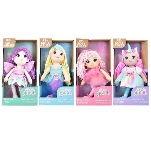 Panenky jsou super měkké, mačkací a mají šité (nebo tištěné) rysy obličeje pro bezpečnost (vhodné pro nejmenší). Velikost panenky cca 30 cm. Každá panenka je vyrobena z recyklovaného polyesteru, čím je ekologická. Přičemž každá panenka vzniká recyklací přibližně sedmi plastových lahví. Čtyři různé druhy – Luna (jednorožec), Pearl (mořáská panna), Skye (víla) a Grace (baletka).