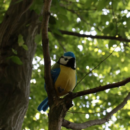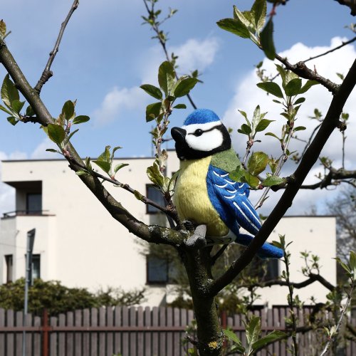 Plyšový pták sýkorka o velikosti 12 cm je ručně ušitý z vysoce kvalitní, jemné plyše, a díky tomu vypadá jako živý.