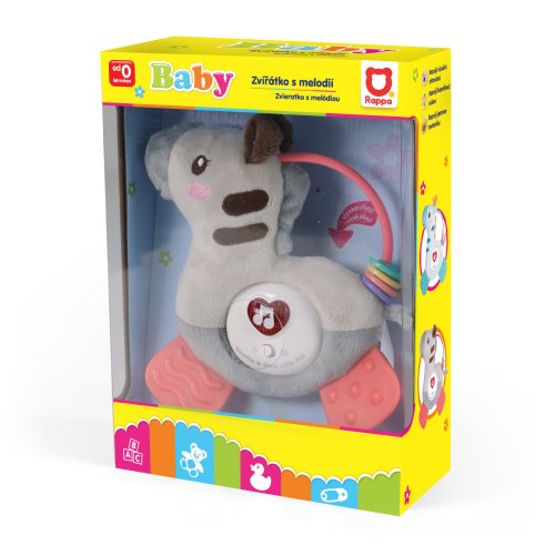 Veselé plyšové kousátko - zebra pro naše nejmenší děti. Při stisknutí barevně bliká a vydává zvuky. Hračka rozvíjí smyslové vnímání dítěte a podněcuje jeho fantazii. Hračka funguje na 3 baterie typu AG13, které jsou součástí výrobku. Přiložen i praktický klip na uchycení do kočárku.