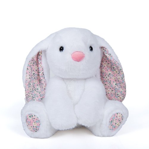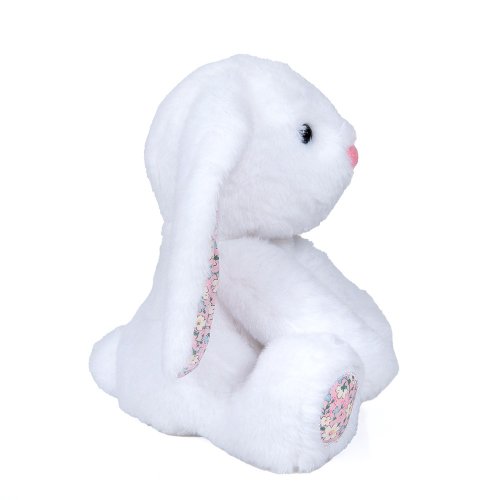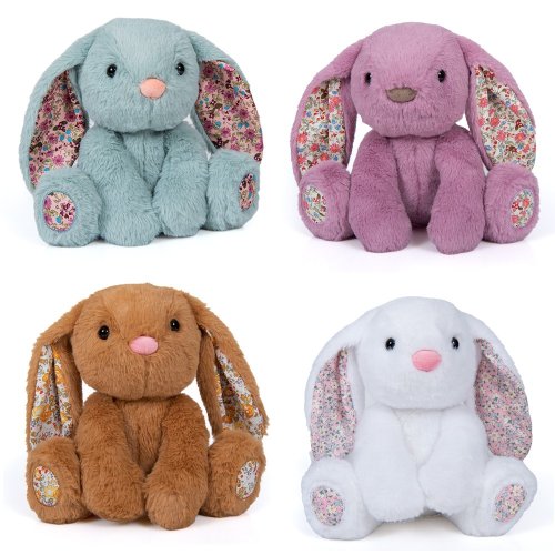 Plyšový králík s látkovýma ušima 25 cm – čtyři barvy bílá, růžová, hnědá a modrá.