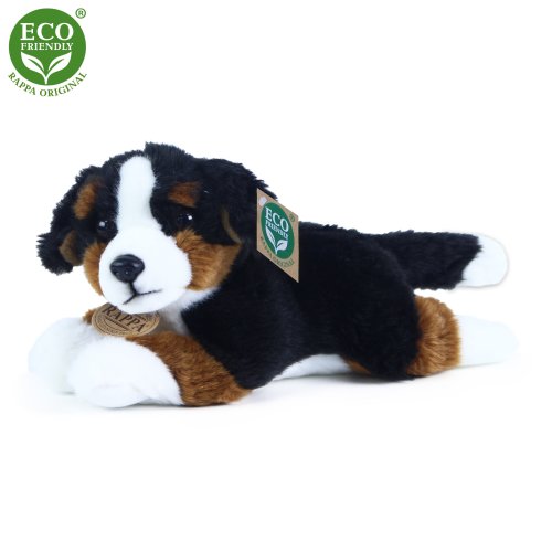 Plyšový pes rasy bernský salašnický měří 24 cm a díky těm nejkvalitnějším materiálům se řadí do Exkluzivní kolekce plyšových hraček značky Rappa.