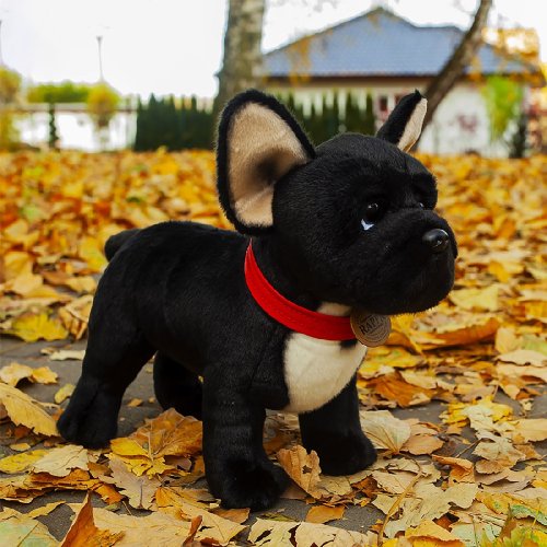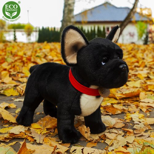 Rozkošný plyšový pes buldoček s červeným obojkem nesmí chybět v žádném dětském pokojíčku! Stojící francouzský buldoček je vyroben z exkluzivního, velmi kvalitního plyše a jeho délka je cca 30 cm. Tento senzační plyšový kousek je ideální i jako dárek. Hlavní vlastnosti: realistické zvířátko ruční zpracování vysoce kvalitní plyš ECO-FRIENDLY výplň Co to vlastně ECO-FRIENDLY znamená? Výplň plyšové hračky je vyrobena z recyklovaných PET lahví. Tento materiál je zcela bezpečný, na omak nerozeznatelný od standartní výplně a plně atestovaný pro bezpečnost i těch nejmenších. Rozhodli jsme se jít zelenou cestou co nejméně zatěžující životní prostředí – cestou ECO-FRIENDLY.
