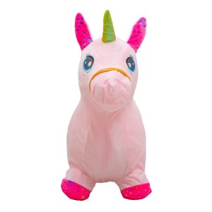 Plyšové nafukovací hopsadlo je zárukou dlouhotrvající zábavy pro Vaše dítě. Hopsadlo se pohodlně drží za uši a obsahuje zvukový modul, který po zmáčknutí mezi ušima vydává realistický zvuk koníka. Je potaženo plyšovým materiálem, který je příjemný na dotek a neklouže. Součástí balení je pumpička k pohodlnému nafouknutí a baterie (3xLR44).