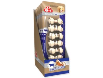 Žvýkací kosti se sušeným hovězím masem uvnitř, doplňkové krmivo pro dospělé psy od 2 do 12 kg hmotnosti.