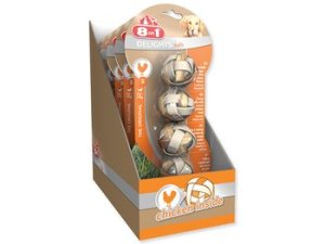 Žvýkací koule se sušeným kuřecím masem uvnitř, doplňkové krmivo pro dospělé psy od 2 do 27 kg hmotnosti.