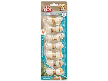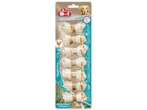 Žvýkací kosti s mineráliemi a se sušeným kuřecím masem uvnitř, doplňkové krmivo pro dospělé psy od 1 do 12 kg.