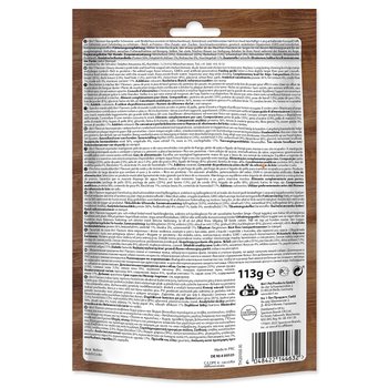 Krmný návod: množství pamlsků upravte s ohledem na fyzickou aktivitu a pravidelný příjem potravy. Vždy zajistěte dostatek čerstvé vody.