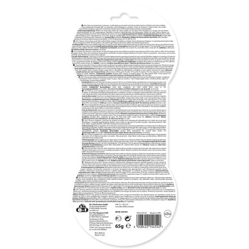Naše neuvěřitelně lahodná žvýkací kost 8in1 Flavours Triple Flavour kombinuje tři lahodné chutě surové vepřové a hovězí kůže zabalené v lahodně šťavnatých kuřecích prsou, které přinášejí výjimečný chuťový zážitek. Tato žvýkací kost, která dlouho vydrží, pomáhá díky přirozenému abrazivnímu účinku během žvýkání regulovat hromadění zubního kamene a plaku. Je bohatá na bílkoviny, má nízký obsah tuku a neobsahuje žádný přidaný cukr, dochucovadla ani umělé konzervační látky. Díky tomu je ideální odměnou nebo svačinkou, která vašeho malého psa jistě zabaví. Navíc neobsahuje geneticky modifikované složky a je rovnoměrně sušená v peci. Nejenže tak kost dlouho vydrží, ale uchová si také cenné živiny. Dopřejte psovi spokojenou zábavu se žvýkací kostí 8in1 Triple Flavour.