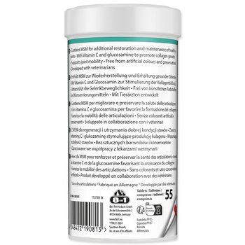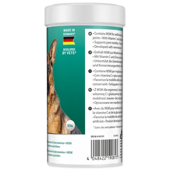 Tablety glukosaminu 8v1 jsou ideálním denním doplňkem pro dospělé a starší psy. S glukosaminem a vitamínem C, stejně jako antioxidanty, obsahuje MSM pro další obnovu a udržení zdravých kloubů. Vyvinuto ve spolupráci s veterináři, 8v1 glukosaminové tablety jsou bez umělých barviv a konzervačních látek a jsou vyrobené v Německu.