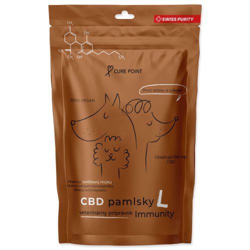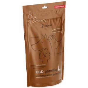 Veterinární a 100% veganské CBD pamlsky vyvinuty pro podporu imunity a vitality psů velkých plemen (nad 35 kg), které mají celou řadu benefitů a vitamínů. Je vhodné je podávat ve stresových situacích jako je např. návštěva veterináře, oslavy Nového roku nebo v případě odloučení od majitele na delší dobu.