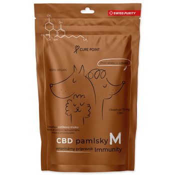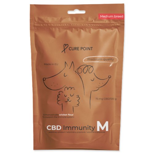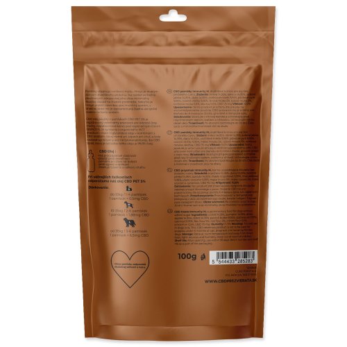 Veterinární a 100% veganské CBD pamlsky vyvinuty pro podporu imunity a vitality psů středních plemen (10 - 35 kg), které mají celou řadu benefitů a vitamínů. Je vhodné je podávat ve stresových situacích jako je např. návštěva veterináře, oslavy Nového roku nebo v případě odloučení od majitele na delší dobu.