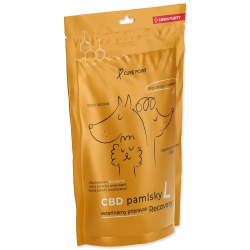 Veterinární a 100% veganské CBD pamlsky vyvinuty pro podporu zdraví a vitality psů velkých plemen (nad 35 kg), které mají celou řadu benefitů a vitamínů. Je vhodné je podávat ve stresových situacích jako je např. návštěva veterináře, oslavy Nového roku nebo v případě odloučení od majitele na delší dobu.