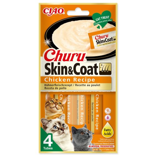 Chutná lízací pochoutka pro kočky v podobě masového pyré z kuřete specializovaná na zdraví srsti a kůže.
