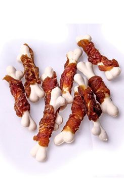 Kost obalená kachním masem, perfektní kombinace pro zdraví a zábavu vašeho mazlíčka. Žvýkání je přirozenou činností každého psa, takže kost, která tvoří jádro pamlsku, je perfektní, aby zajistila uspokojení potřeb vašeho mazlíčka, a také pomáhá posilovat kosti. Kachní maso bohaté na vitamíny a bílkoviny je pro psy lehce stravitelné a má skvělý vliv na imunitu zvířete.