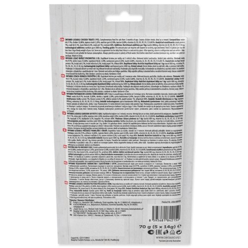 Ontario lízací pochoutka přichází v praktickém balení pěti tub po 14g, které udržují pastu čerstvou a připravenou k podání. Můžete ji podávat přímo z tuby, na lízací podložku či do jiných interaktivních hraček nebo ji použít ke zlepšení chuti suchého krmiva, pokud ho vaše kočka odmítá.