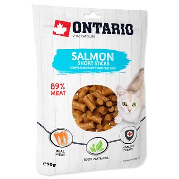 Doplňkové krmivo pro kočky. Krátké masové tyčinky z lososa s vysokou chutností, ideální jako odměna.