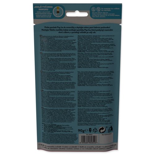 | Složení | Hrachový škrob, batátový škrob, kuřecí, rostlinný glycerin, celulózová vláknina, karob (4?%), banán (4?%), uhličitan vápenatý, rýžová mouka, lněný olej, výtažek z?vojtěšky, fruktooligosacharidy (prebiotikum FOS) (0,1?%).