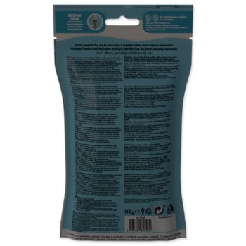 Pamlsek podávejte jako součást nutričně vyvážené stravy. K?dispozici by vždy měla být čerstvá pitná voda. Psi by měli být během krmení neustále pod dohledem. Žvýkací pamlsky podávejte na povrchu, na kterém nezůstávají skvrny. Nevhodné pro štěňata do 6 měsíců nebo před koncem prořezávání zubů. Abyste zabránili potenciálnímu nebezpečí udušení, vyberte pamlsek, který má vhodnou velikost pro plemeno a?věk vašeho psa.