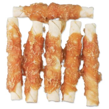 Tyčinky z buvolí kůže obalené kuřecím masem pro střední a velké psy. Doplňkové krmivo, podávejte jako pochoutku.