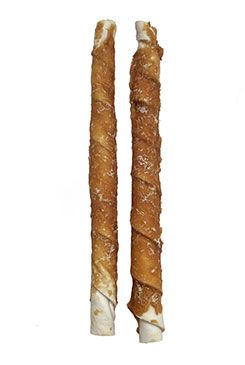 Masová pochoutka pro psy, tyčinka z buvolí kůže s kuřecím masem.