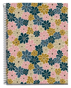 Kroužkový blok v kartonových deskách, potažený matným tištěným papírem.