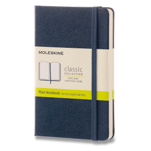 Zápisník s měkkou, ve hřbetu šitou vazbou v kartonových deskách, obepnutý pružnou páskou proti samovolnému otevírání.