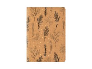 Školní linkovaný sešit ve formátu A4, v hnědé barvě, s motivem rostlin, v originálních deskách z kraftového papíru.