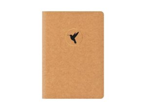 Školní linkovaný sešit ve formátu A4, v hnědé barvě, s motivem kolibříka, v originálních deskách z kraftového papíru.