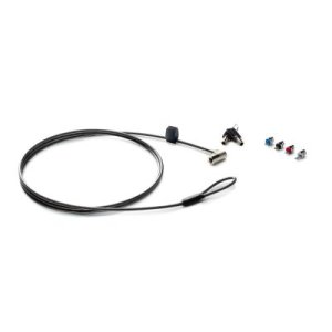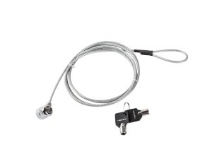 Lankový bezpečnostní zámek na klíč pro notebooky vyrobený z galvanizované oceli, pokrytý gumovou vrstvou, vhodný pro montáž v bezpečnostních slotech notebooků a jiných zařízení např. trezorech, který …