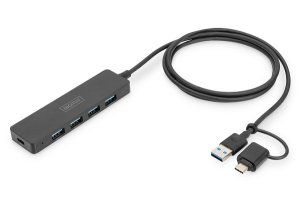 Rozbočovač USB 3.0, 4 porty, tenký s adaptérem USB-C, 5 Gb/s, 1,2 m kabel Rozšiřuje váš notebook s připojením USB-C nebo USB A o 4 další superrychlé porty USB.
