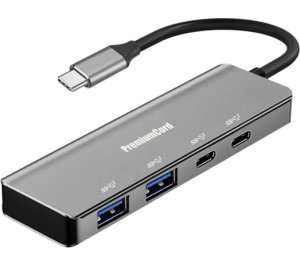 PremiumCord 5G SuperSpeed Hub USB-C na 2x USB 3.2 C +2x USB 3.2 A, Aluminum - USB hub 2x USB 3.2 konektor typu C + 2x USB 3.2 konektor typu A pro připojení klávesnice, myši, SSD, flash paměťi, CD-R/RW's, …